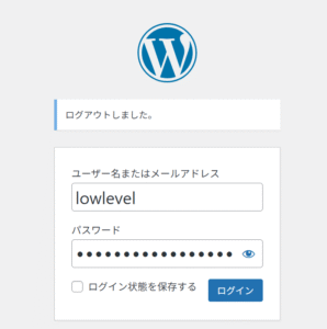 今回、lowlevelというユーザーを作成します。権限は購読者とします。想定シチュエーションは、脆弱なプラグインを通じてユーザーを作成された状態で、権限はいきなり管理者ユーザーだったと仮定します。しかしこのユーザーは、ホワイトリストに追加されていません。試しにこのユーザーでログインを試行してみるとどうなるでしょうか。