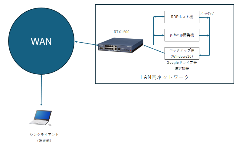ここからはオマケですが、私の家にはRTX1200というYAMAHAの業務用ルーターがあります。…はい、VPNを有効化して、ついでにWin10のネットほぼ繋がない中古機を購入してこのような構成を構築しました。