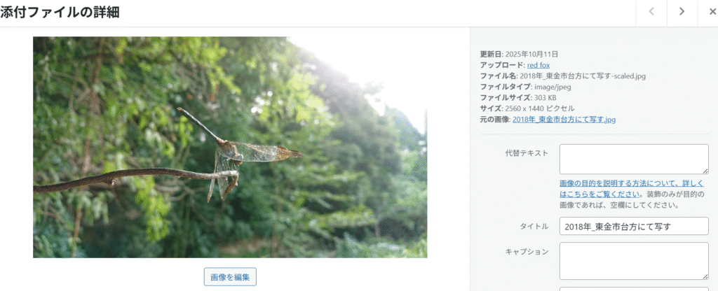 見てのとおり、ファイル名が日本語で、場所もわかる状態です。このままメディアライブラリや投稿ページからアップロードしてみます。