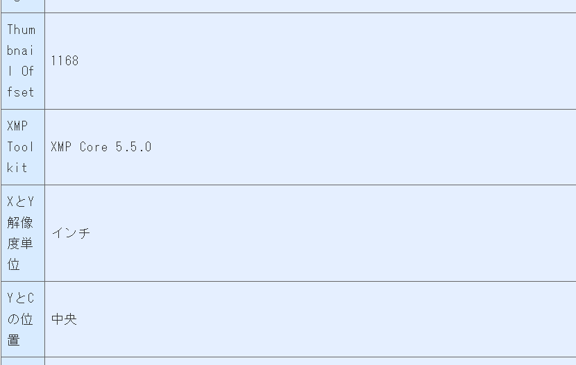 このように、ファイル名がそのままの状態でアップロードされました。さらにこの画像データのメタデータ(Exif)情報を探してみると、次のような情報が出てきます。