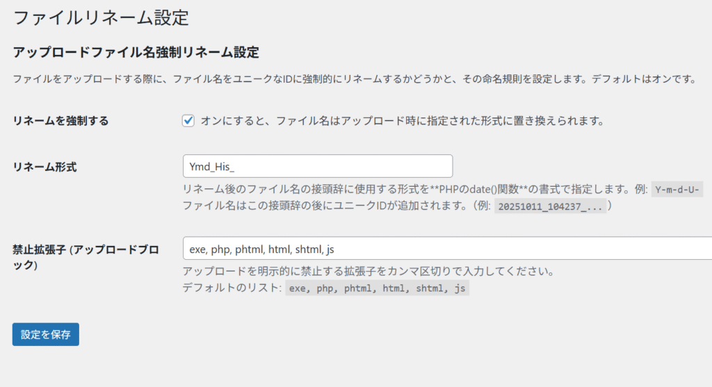 手元で全部やるのが理想かもしれませんが、人間は必ず「うっかり」ミスを起こすので、このような対策を講じているに越したことはないでしょう。ZIPファイル以外は、このプラグインで強制リネームされます。注意してほしいのは、attachment.phpやimage.phpが有効な場合は、ファイル名の元のタイトルはそのまま表示されるという点です。WordPressの仕様になりますので、必要がなければそれぞれ無効化してください。